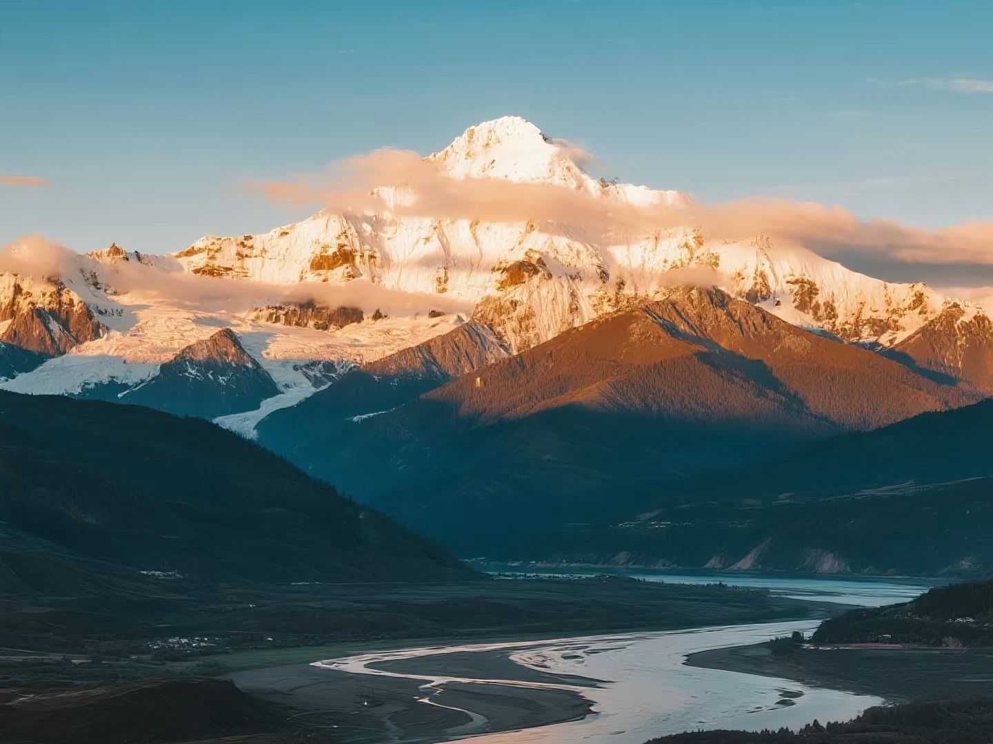 After settling into your scenic hotel and acclimatising, should the evening skies clear, you may be privileged to witness the extraordinary spectacle of "Sunlit Golden Mountain"—the setting sun draping Namcha Barwa in a golden mantle.