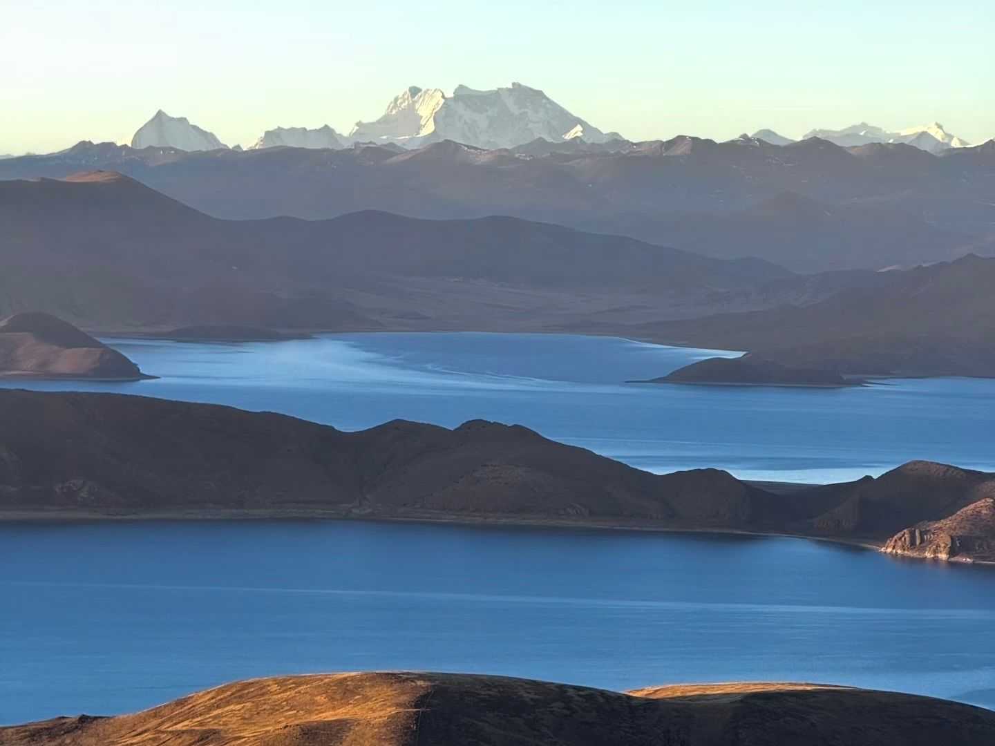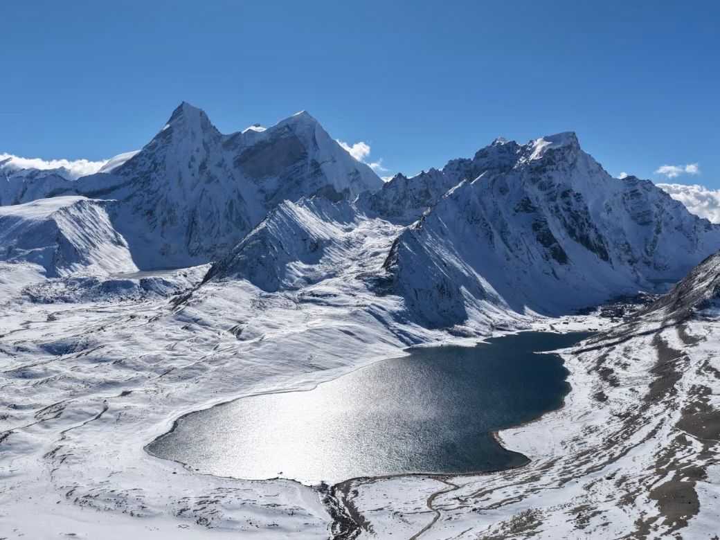 Today marks the commencement of our exploration along the "Tibet's Hidden Path", where we shall encounter the breathtaking vistas of sacred lakes, glaciers and high-altitude reservoirs. Departing Lhasa at dawn, we shall travel approximately 2.5 hours along the Yarlung Tsangpo Expressway to reach Yamdrok Lake, one of Tibet's three sacred lakes. From the viewing platform, the lake appears like a sapphire set amidst the mountains, shifting through dreamlike hues of blue, turquoise, and green as the light changes. Take photographs here or stroll along the lakeshore to absorb the sacred lake's tranquillity (our guide will remind you to respect local customs by refraining from swimming or littering).