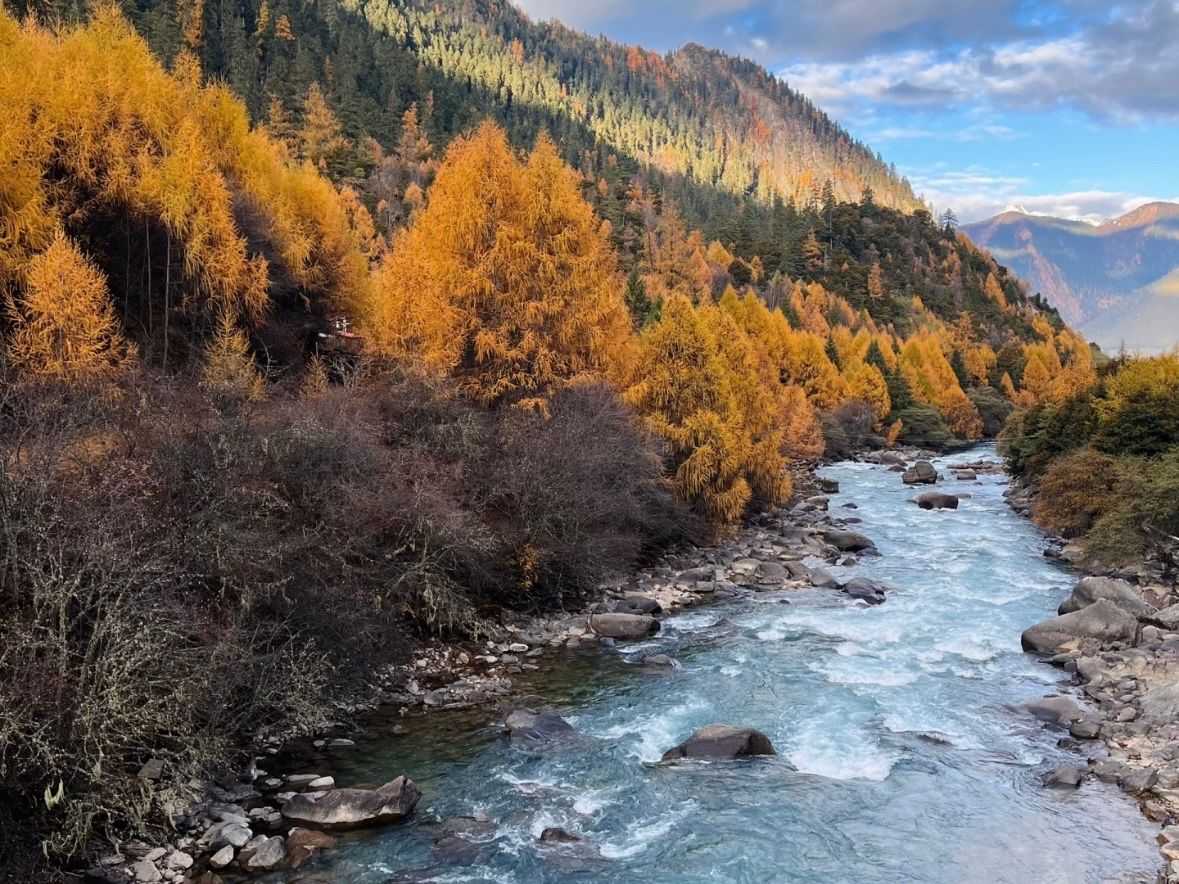 In the afternoon, we embark on our return journey along the Nyang River, hailed as "Tibet's Yangtze." Crystal-clear waters, dense primeval forests, and scattered Tibetan dwellings compose a flowing panorama. We shall pause at the finest vantage point, allowing you to capture this dreamlike scenery through your lens.